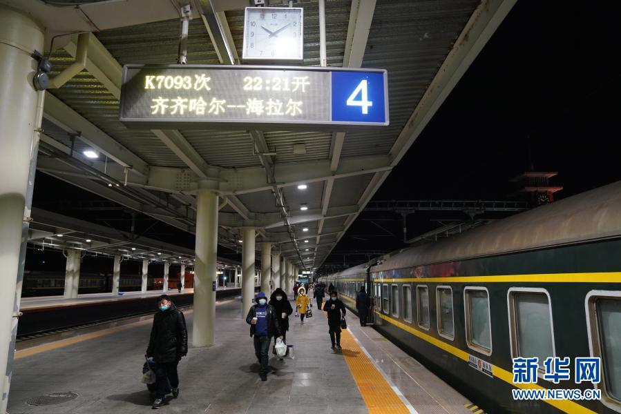 在齐齐哈尔站,旅客准备登车(2021年1月6日摄)。新华社记者 王建威 摄