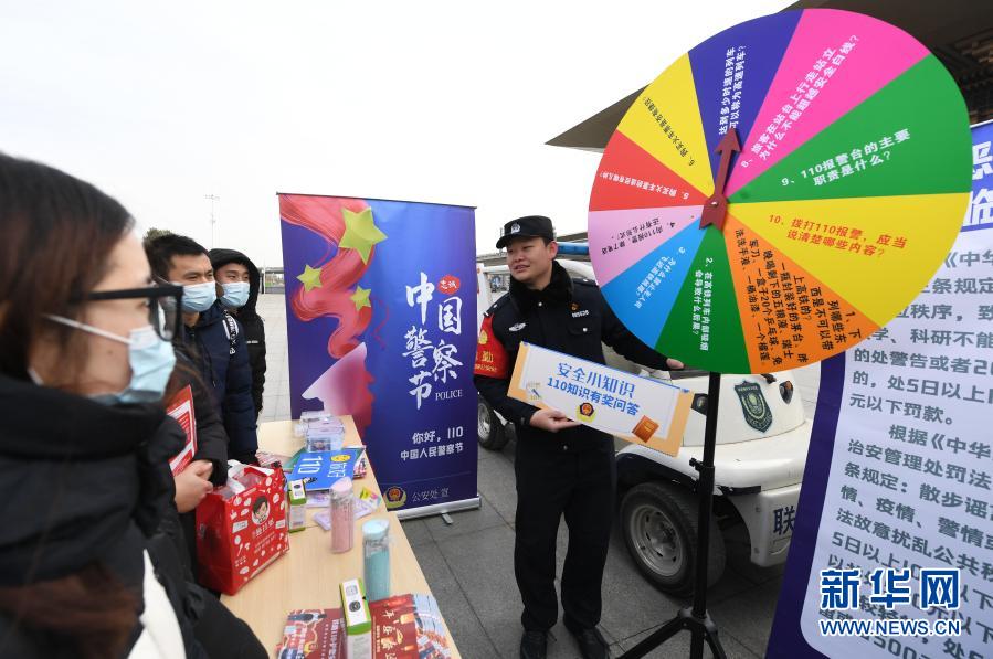 1月7日,在南京南站北广场,民警和群众进行答题互动。新华社记者 季春鹏 摄
