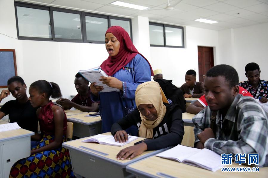 这是1月4日,在坦桑尼亚达累斯萨拉姆大学孔子学院的课堂上,伊马妮·哈吉给学生讲授汉语课程。
