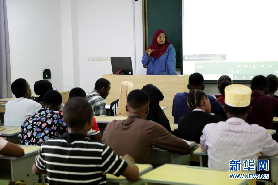这是1月4日,在坦桑尼亚达累斯萨拉姆大学孔子学院的课堂上,伊马妮·哈吉给学生讲授汉语课程。