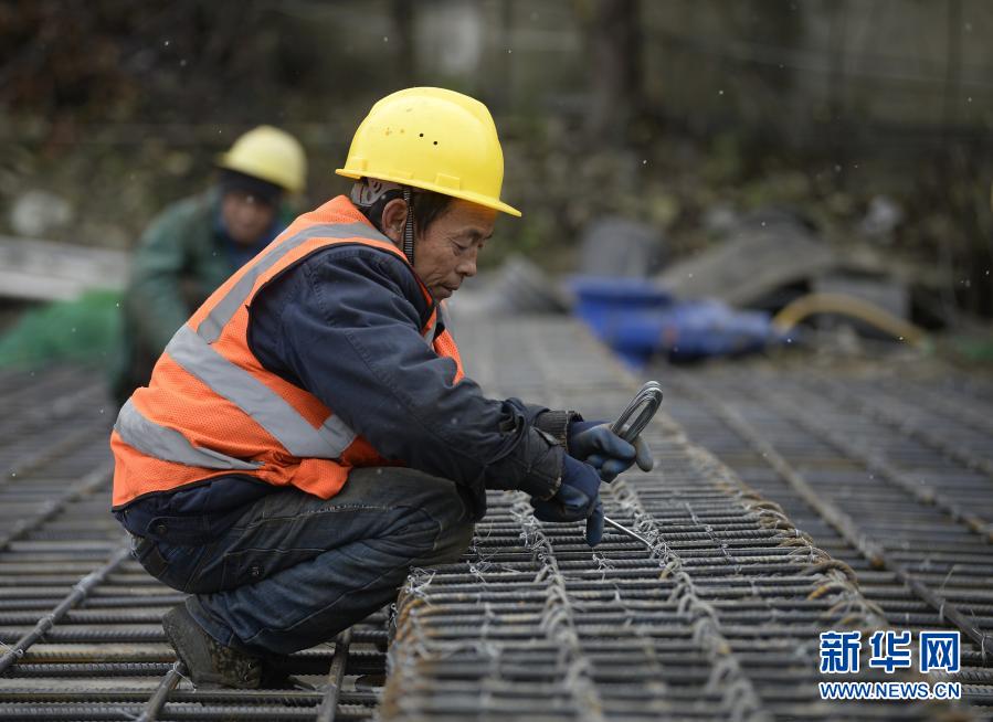 1月7日,中铁八局集团有限公司城市轨道交通分公司工人在成都地铁13号线培风站施工。新华社记者 刘坤 摄
