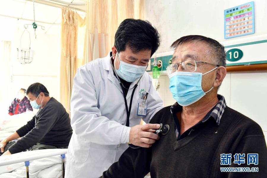 1月6日,在山东省立第三医院,援鄂医疗队队员、大内科主任王言森在呼吸内科病房查房。