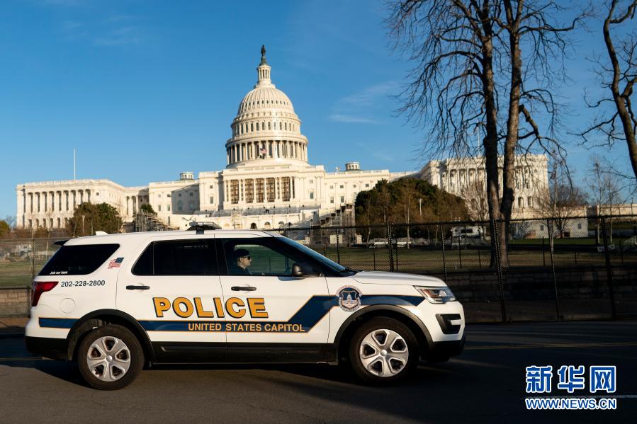 1月7日,在美国华盛顿,一辆警车从国会大厦前驶过。