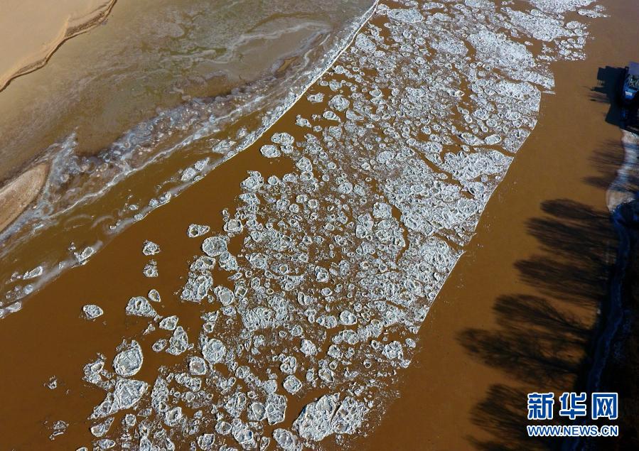 这是1月8日在黄河济南段拍摄的流凌(无人机照片)。新华社记者 朱峥 摄