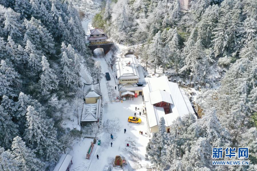 1月8日,武夷山桐木关哨卡白雪皑皑(无人机照片)。