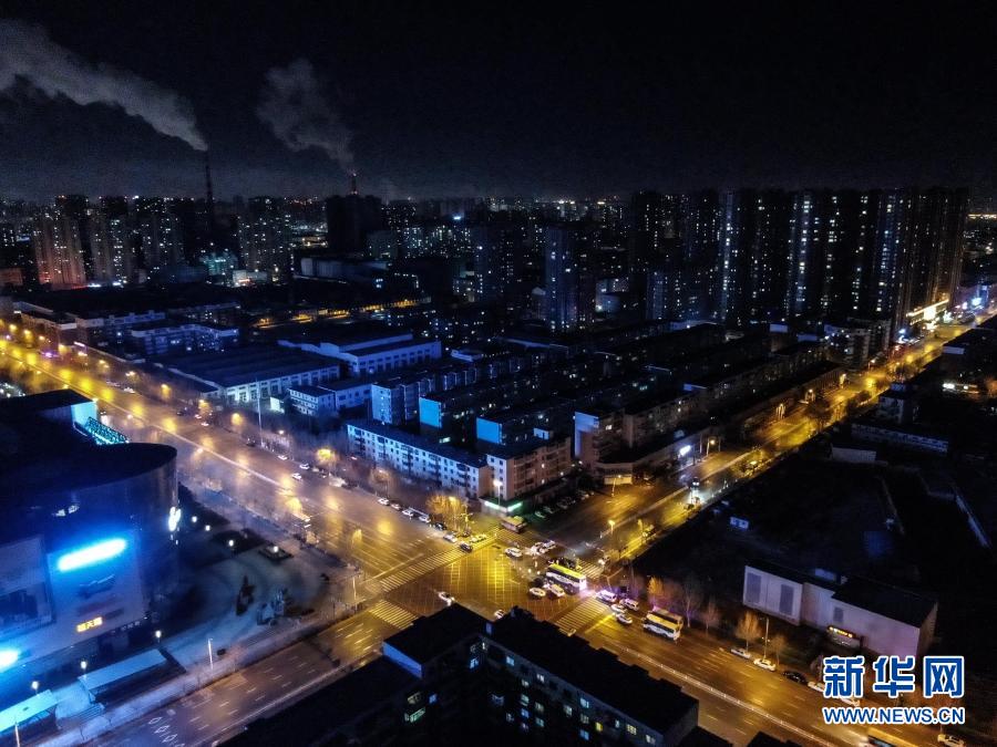 1月7日晚拍摄的昆山西路与塔湾街交汇处的防疫重点管控区域(无人机照片)。