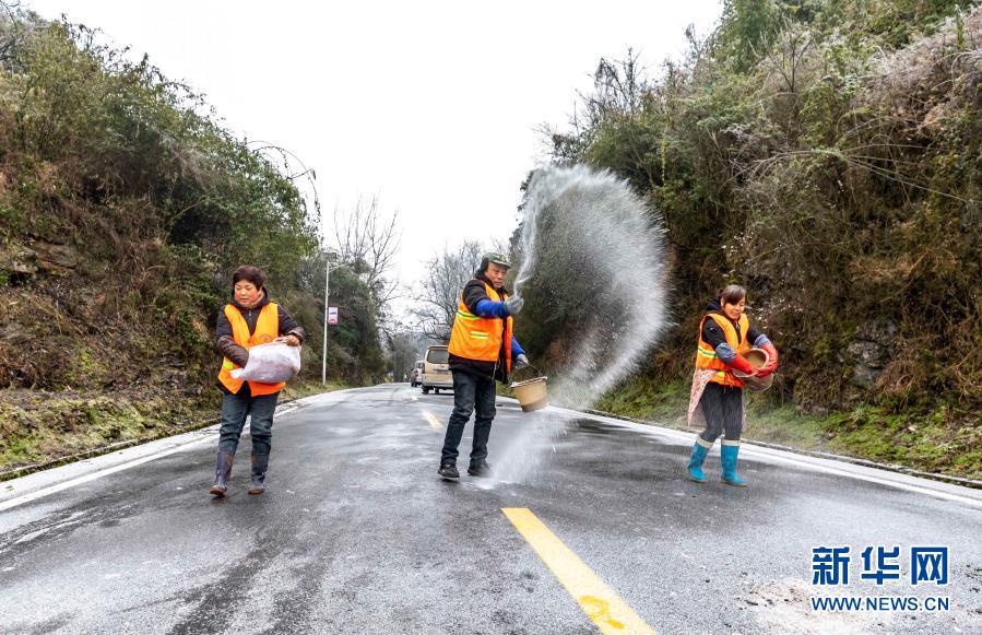近日,受强冷空气影响,贵州省多地出现雨雪天气和道路凝冻情况。贵州省交通路政、交警等部门开展道路撒盐除冰作业,对车辆进行管控分流,全力保障道路安全通畅。