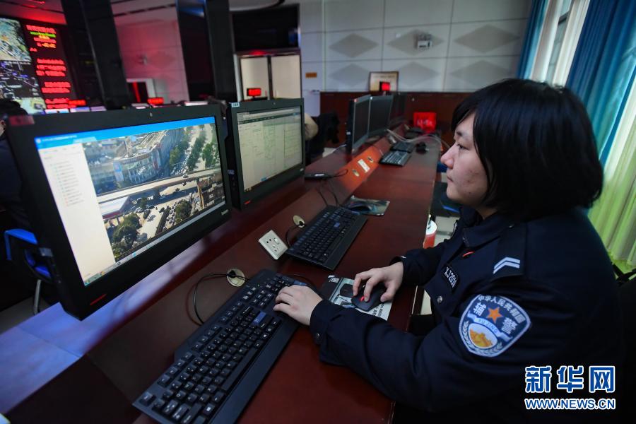 1月8日,在长沙市公安局交通警察支队雨花大队,工作人员通过视频监控查看道路情况。新华社记者 陈泽国 摄
