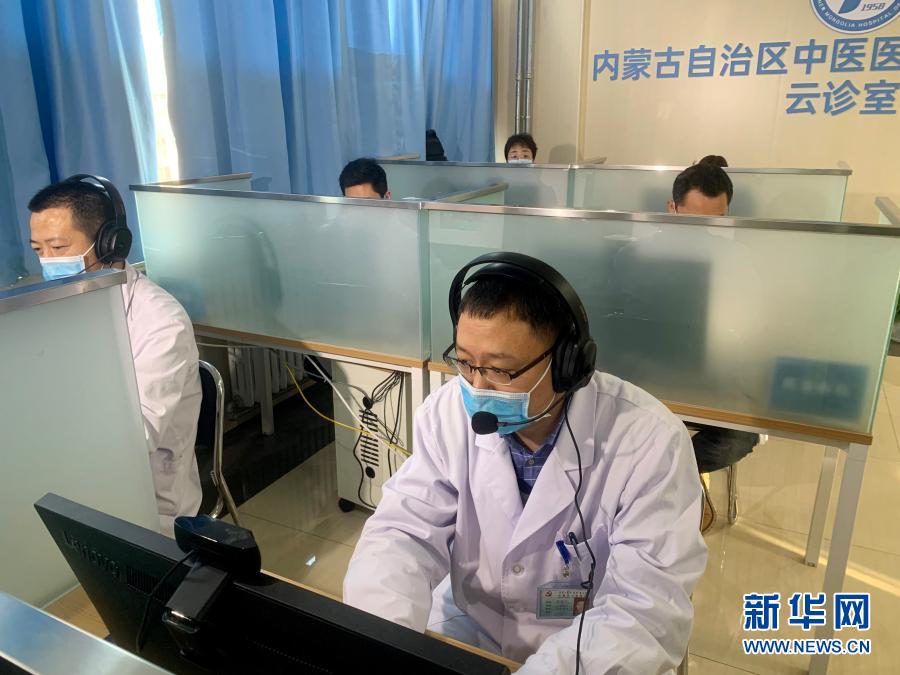 1月8日,常见病和慢病科室医生在内蒙古自治区中医医院互联网医院的云诊室内工作。