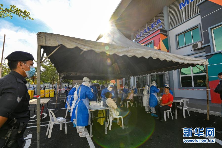 1月8日,在马来西亚雪兰莪州沙阿兰,医务人员为当地居民进行新冠病毒检测取样。