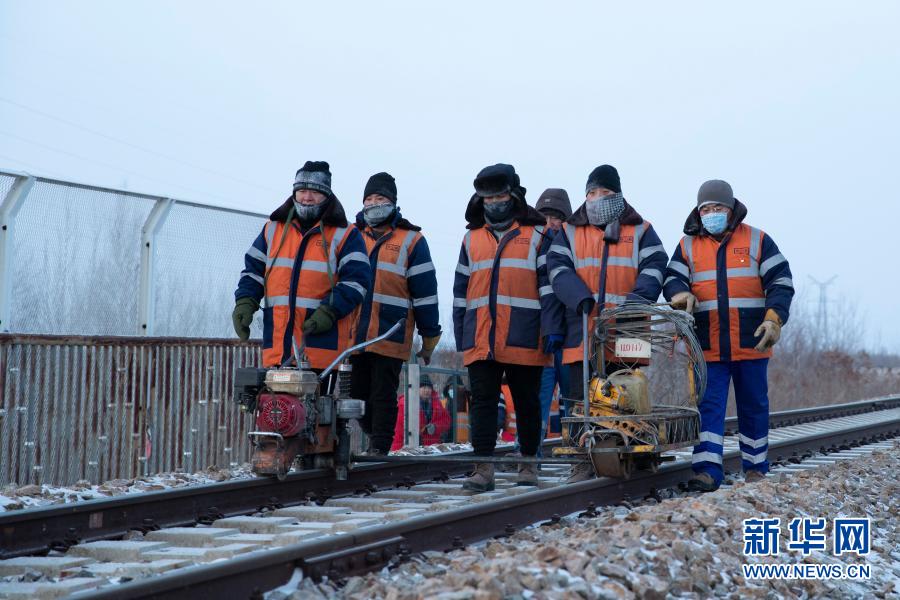 1月7日,在抚远线路工区前抚线铁路122公里处,王旭东和工友结束当日作业准备返回工区。新华社发(张涛摄)