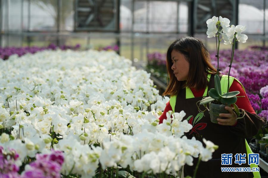 寒冬时节,位于江西省赣州市于都县禾丰镇的鑫悦兰花小镇温室里的蝴蝶兰正陆续开放。据介绍,这个兰花小镇有兰花大棚600亩,每年培育国兰200万盆、蝴蝶兰100万盆以及其他各类花卉,年销售2000多万元,并带动周围300余户农民增收。