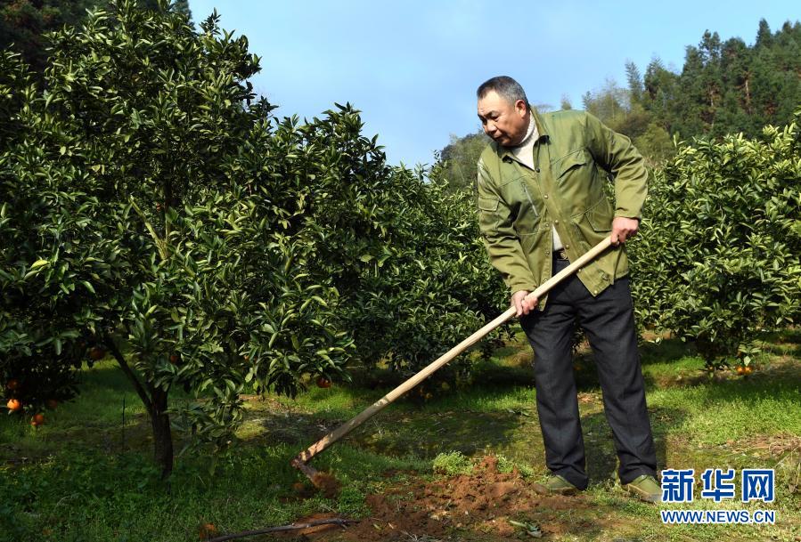 1月8日,顺昌县元坑镇洋坊村脱贫农民李水金在管理果园。李水金一家3口人患病,通过投保的医疗综合保障保险,近年来就医治疗费用33295元全部报销。新华社记者 彭张青 摄