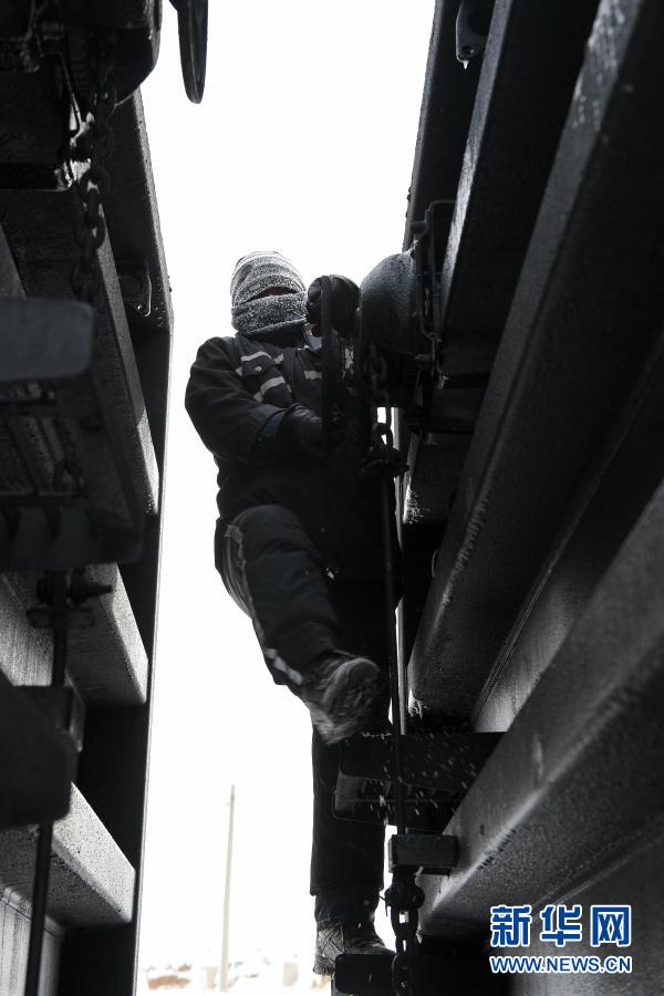 当日,内蒙古锡林郭勒盟锡林浩特市气温低至零下30摄氏度。中铁呼和浩特局集团有限公司锡林浩特站调车员在严寒中进行调车作业,每班室外作业时间长达7个小时。他们将一节节车厢重新编组,发向目的地,全力保障冬季列车运行畅通。