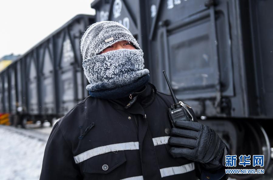 当日,内蒙古锡林郭勒盟锡林浩特市气温低至零下30摄氏度。中铁呼和浩特局集团有限公司锡林浩特站调车员在严寒中进行调车作业,每班室外作业时间长达7个小时。他们将一节节车厢重新编组,发向目的地,全力保障冬季列车运行畅通。