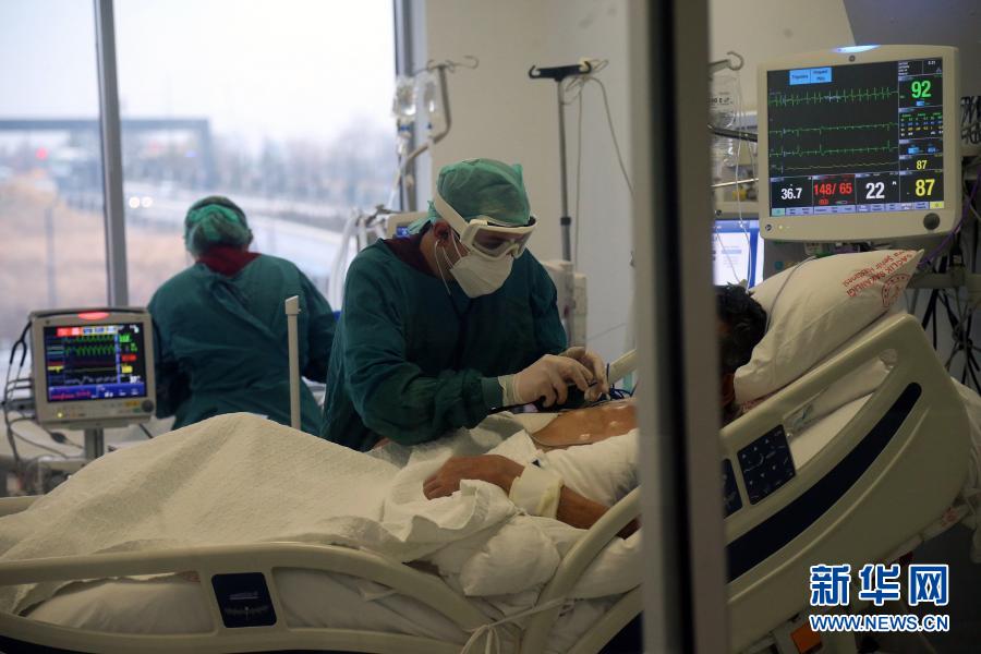 1月8日,医生在土耳其安卡拉一家医院收治新冠患者的重症监护室里工作。