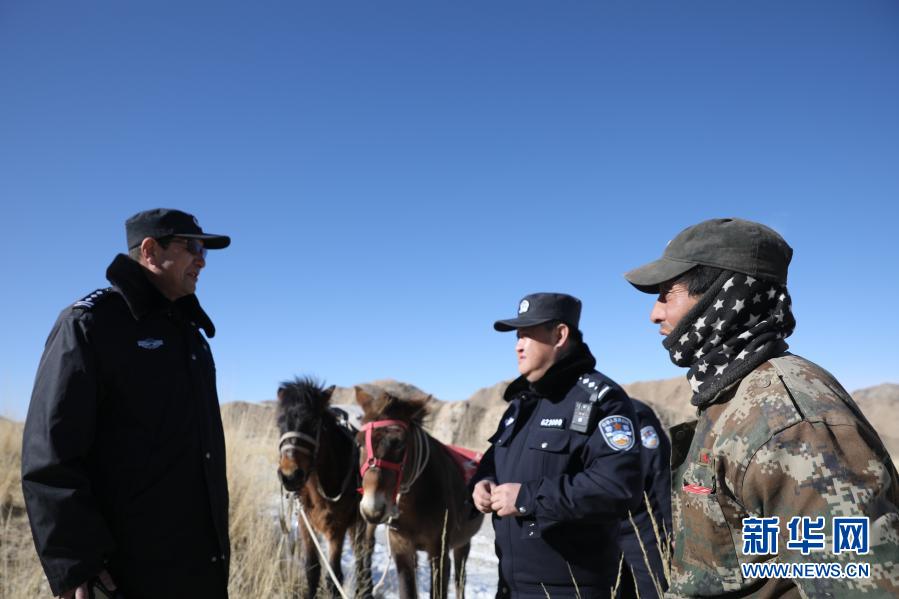 1月8日,安南坝分局民警向牧民了解野生动物迁徙情况。新华社记者 杜哲宇 摄