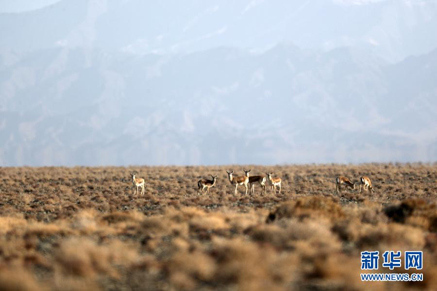 这是1月8日在甘肃安南坝野骆驼国家级自然保护区拍摄的国家二级保护动物鹅喉羚。新华社记者 杜哲宇 摄
