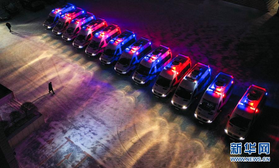 长春市公安局夜巡车辆整装待发(1月6日摄)。