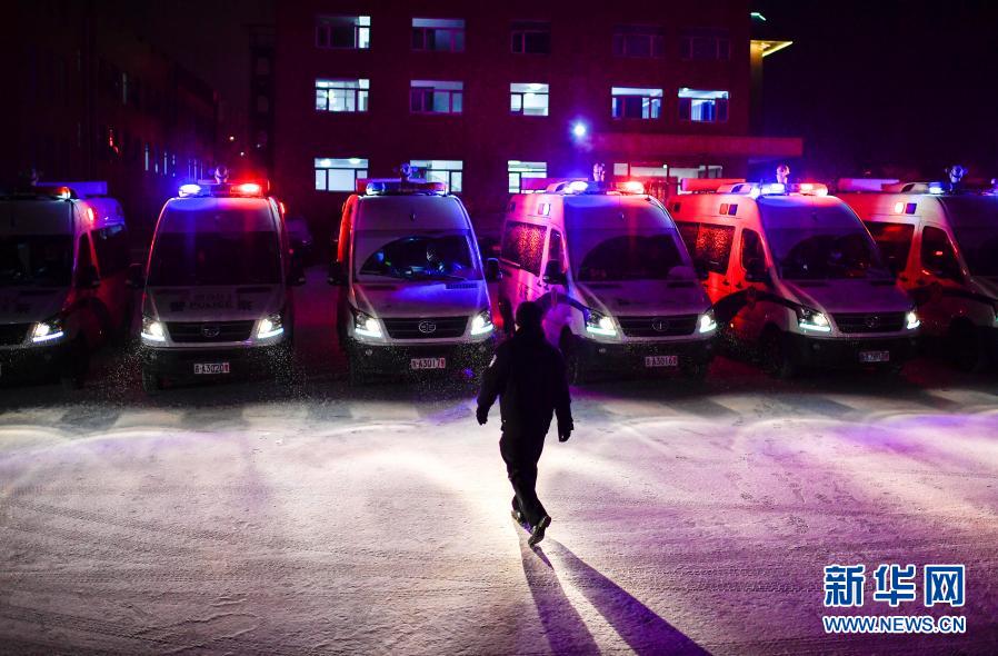 长春市公安局民警走向巡逻车辆,准备出发执行夜巡任务(1月6日摄)。
