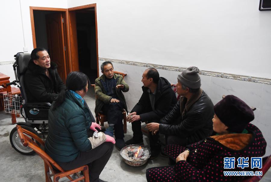 1月6日,毛相林(左三)和下庄村村民交流。新华社记者 王全超 摄