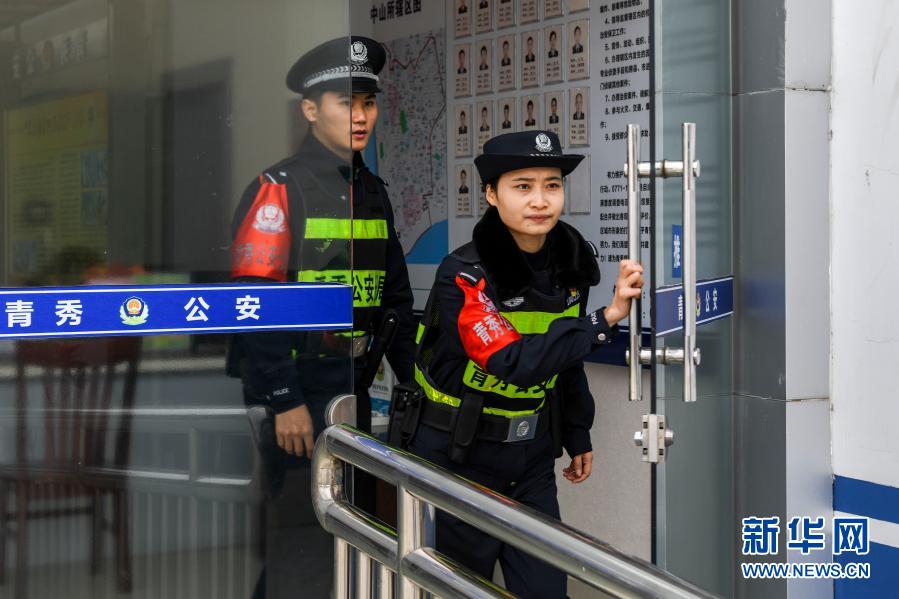 2020年12月31日,在南宁市中山派出所,蒋兰(右)接到群众报警称发现一名走失老人,准备出警。新华社记者 刘岭逸 摄