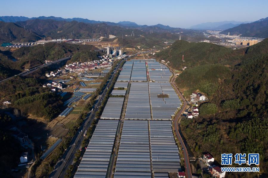 1月8日拍摄的建德市杨村桥镇草莓小镇示范园区的草莓大棚(无人机照片)。