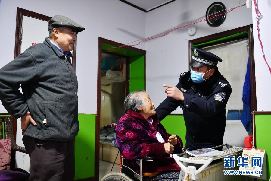 1月8日,汪勇(右一)在西安市咸东社区走访居民。