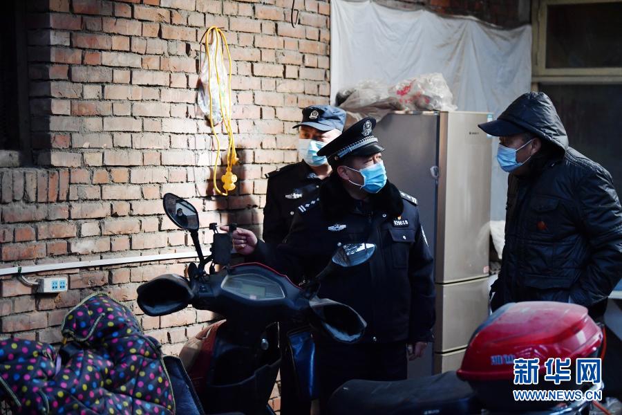 1月8日,汪勇(中)在西安市咸东社区检查电动车充电安全情况。