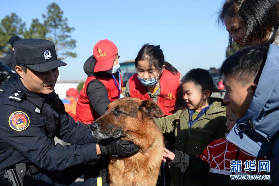 1月9日,市民与警犬互动。当日,长沙市公安局在特巡警支队樊塘训练基地开展警营开放日活动,邀请市民参观体验,迎接首个中国人民警察节。新华社记者 陈振海 摄