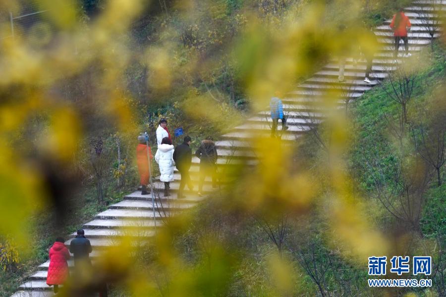 1月9日,游客在重庆市北碚区静观镇素心村腊梅园游玩。