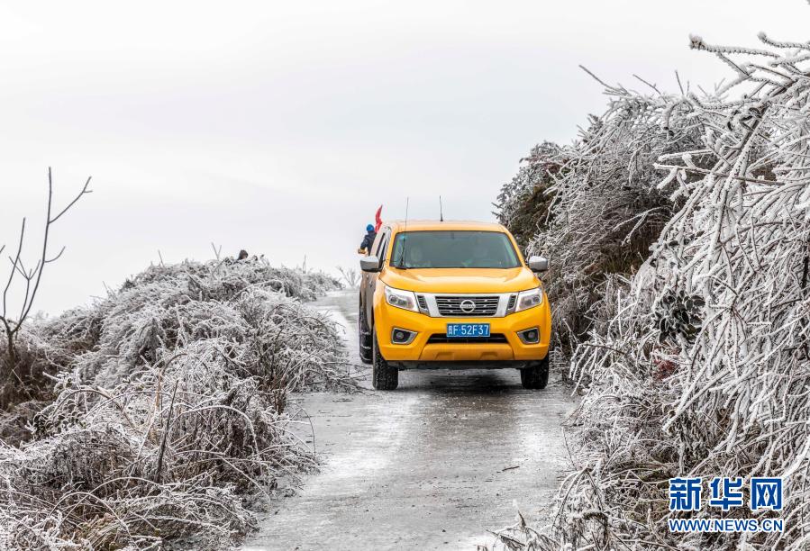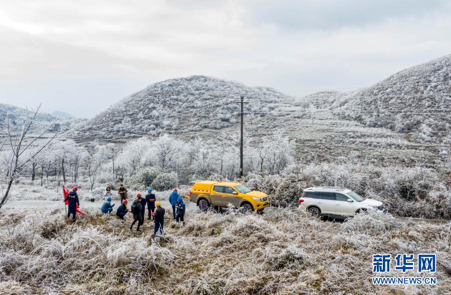 1月9日,贵州省毕节市黔西县电力抢修人员在赶往中建乡红板村途中。