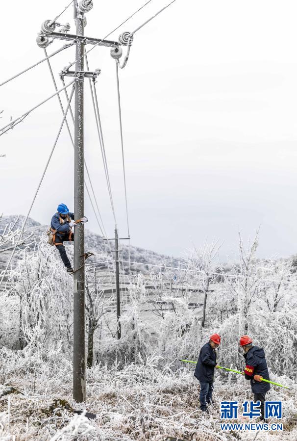 近日来受强冷空气影响,贵州省多地连续出现低温凝冻天气,黔西县电力部门组织抢修人员对部分区域进行巡视和检修,保证生产生活用电安全。