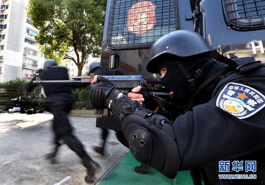 2017年11月24日,上海虹口公安分局特警支队“虹剑”突击队队员练习迅速出击。