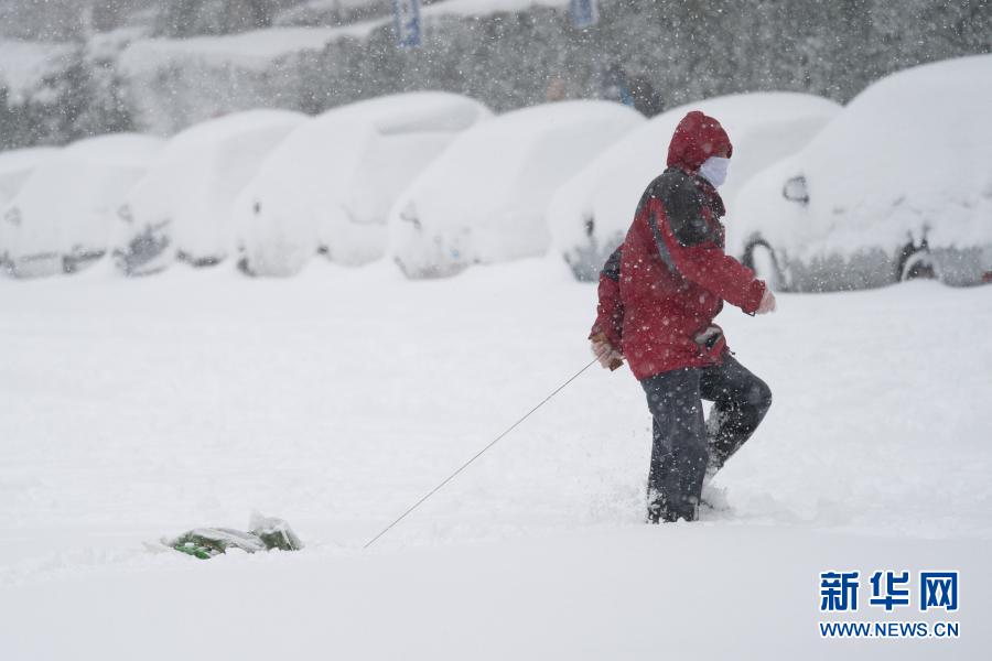 1月9日,市民在西班牙马德里拖着自己的物品出行。