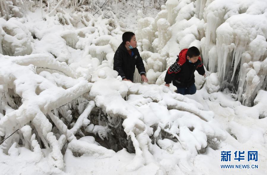 1月9日,游客在白桦林景区玩耍。新华社发(史有东 摄)