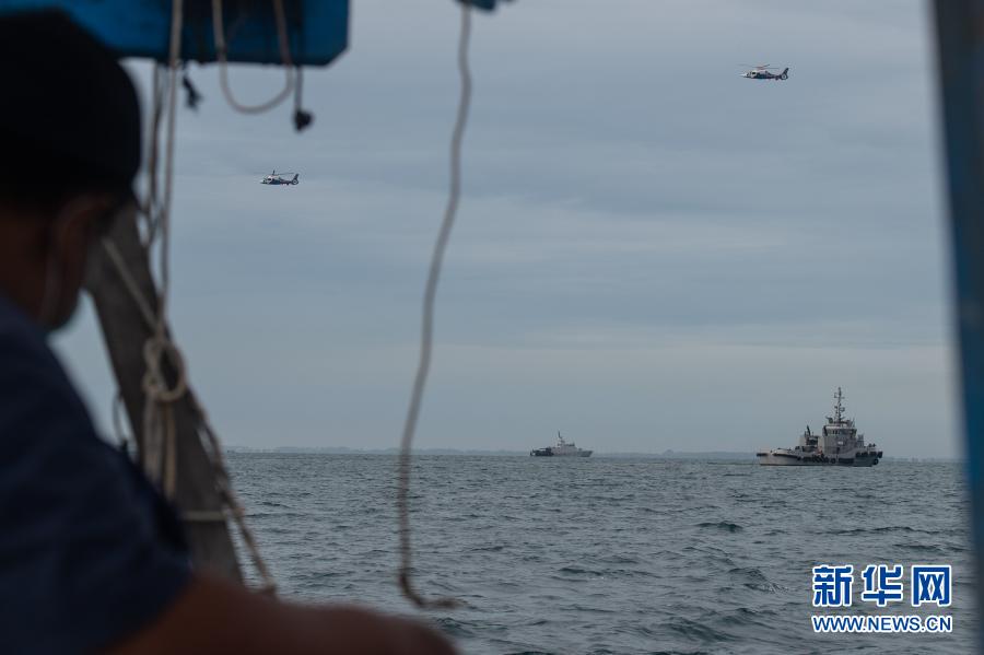 1月10日,搜救船只在印度尼西亚雅加达千岛群岛区域的海域展开搜索。