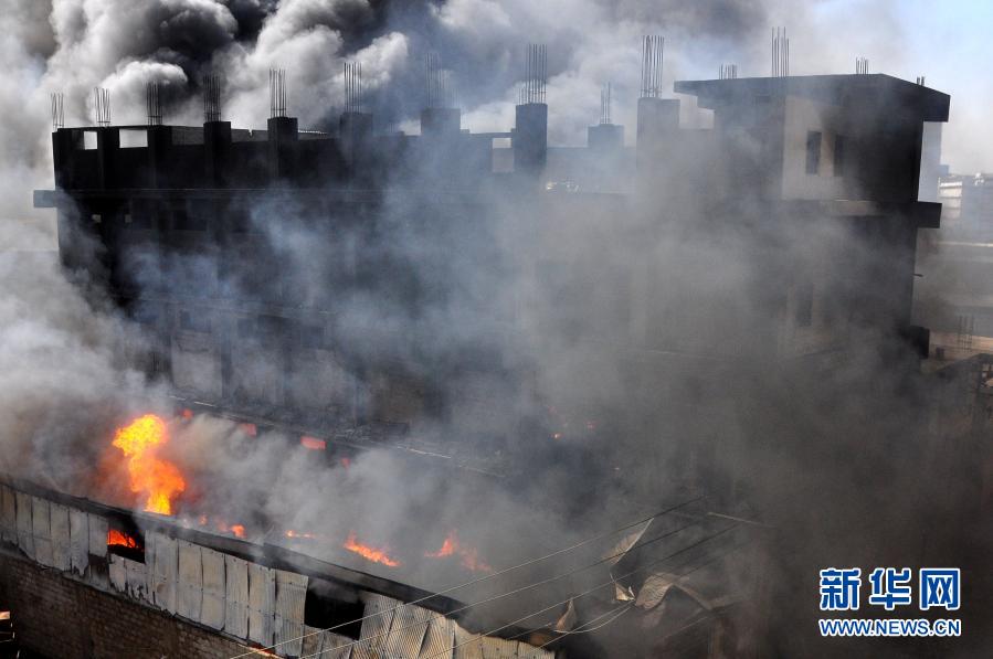 这是1月9日在巴基斯坦南部港口城市卡拉奇拍摄的失火的化工厂。