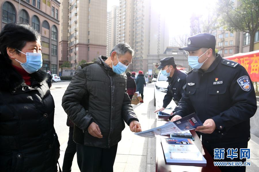 1月10日,合肥市肥西县公安局花岗派出所民警向花岗镇董岗社区的居民介绍防诈骗知识。