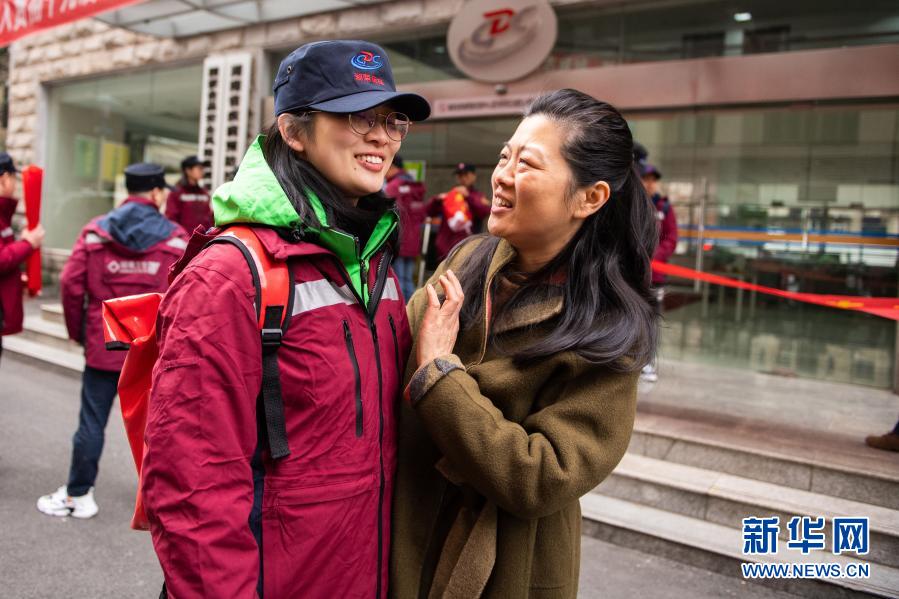 1月10日,在湖南省疾控中心,医务人员和亲友道别。
