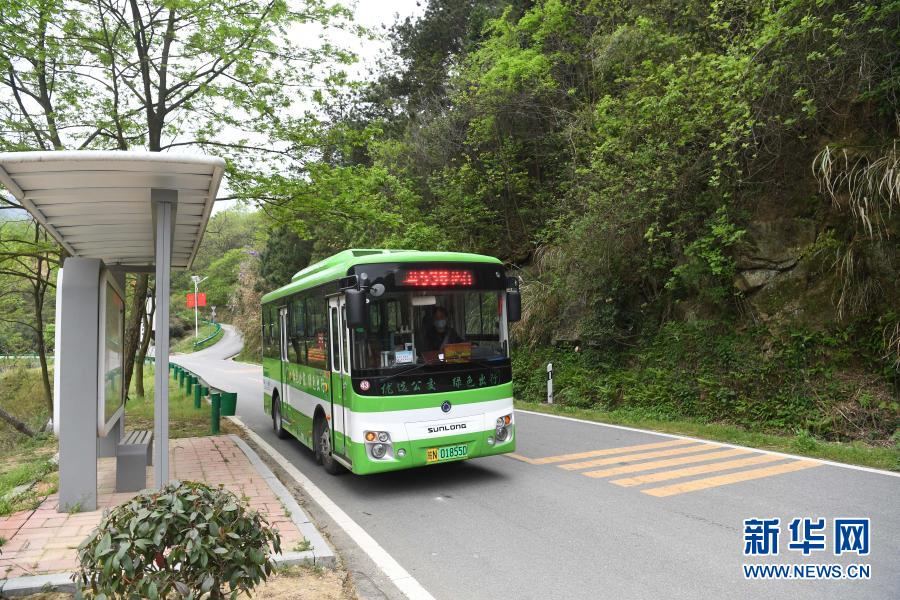 一辆公交车行驶在大湾村的公路上(2020年4月17日摄)。新华社记者刘军喜摄