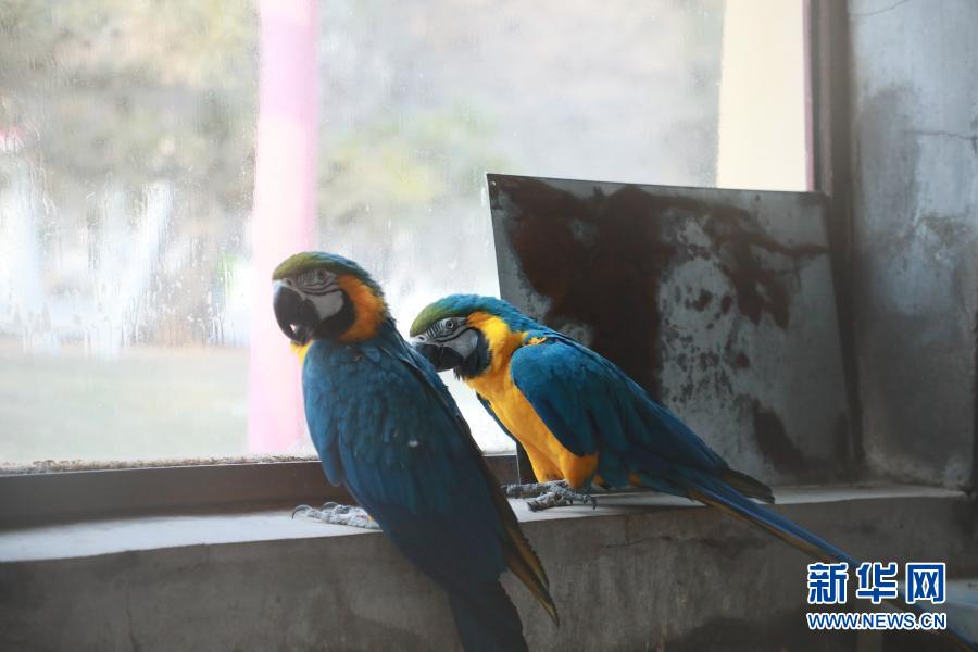 1月8日,西宁野生动物园的金刚鹦鹉在晒太阳。新华社记者 严赋憬 摄