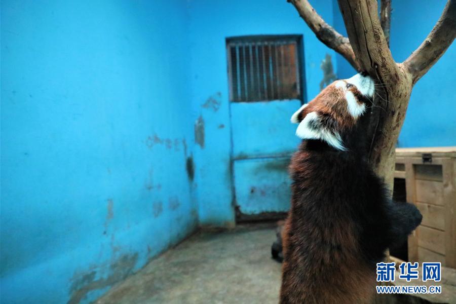 1月8日,西宁野生动物园的小熊猫在爬树。新华社记者 严赋憬 摄