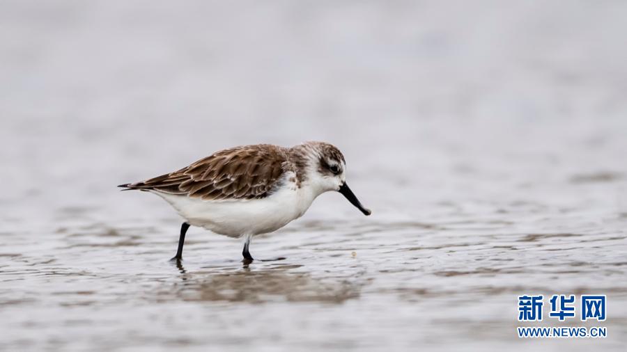 1月8日,一只勺嘴鹬在闽南晋江深沪湾滩涂觅食。新华社记者 梅永存 摄