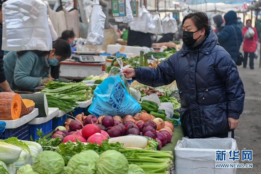 1月11日,在吉林省长春市南关区一家农贸市场,市民选购蔬菜。