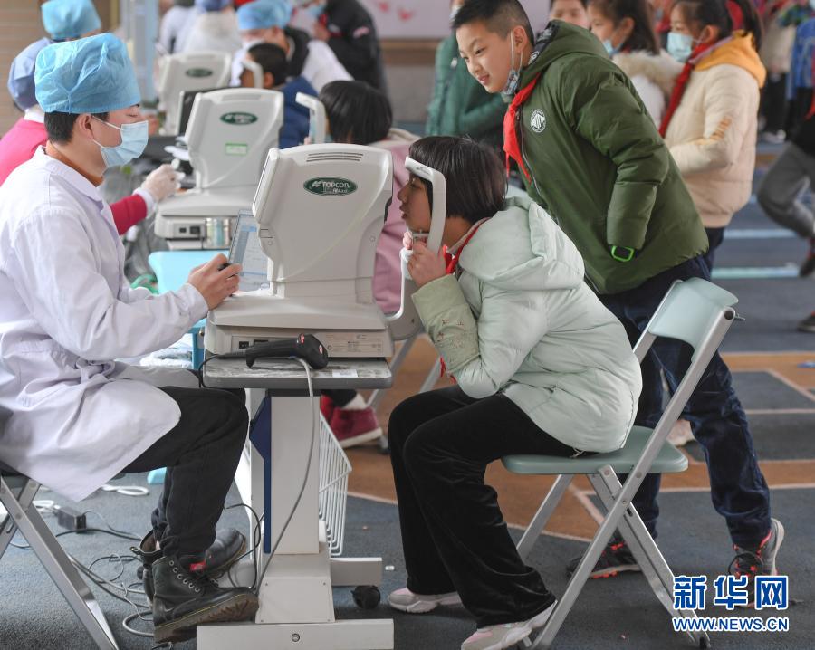 1月11日,在福建省福州市铜盘中心小学,学生在接受视力筛查。