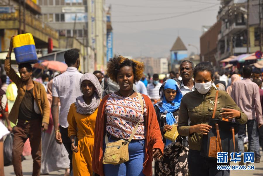 1月9日,在埃塞俄比亚首都亚的斯亚贝巴,人们在露天市场上行走。
