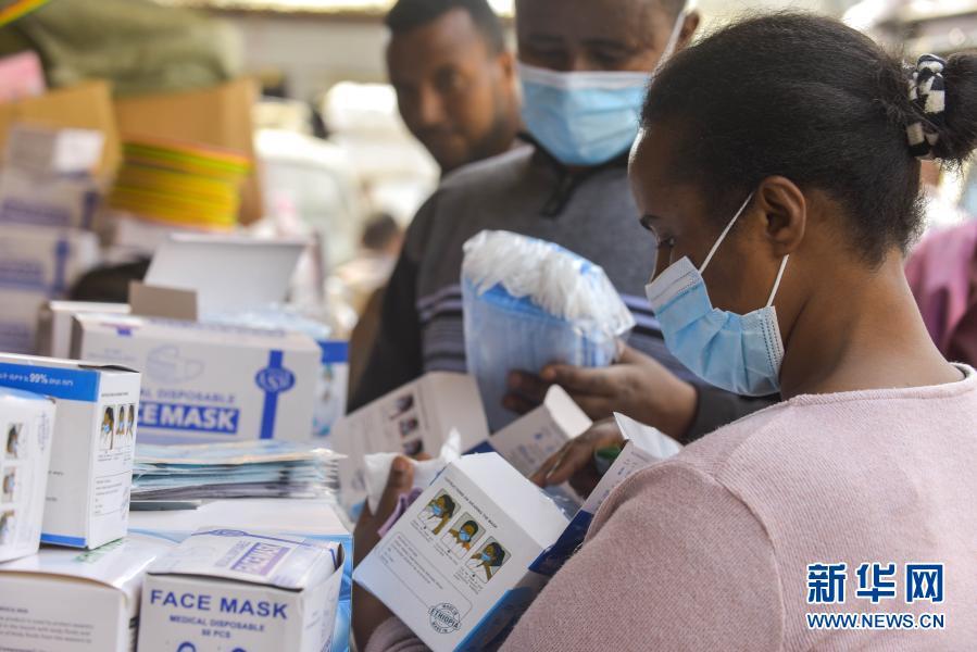 1月9日,在埃塞俄比亚首都亚的斯亚贝巴,一名女士在街上购买口罩。