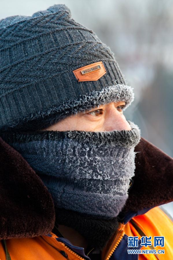1月11日,一名安全员在漠河站作业时围脖和帽子上了霜。 新华社记者 谢剑飞 摄