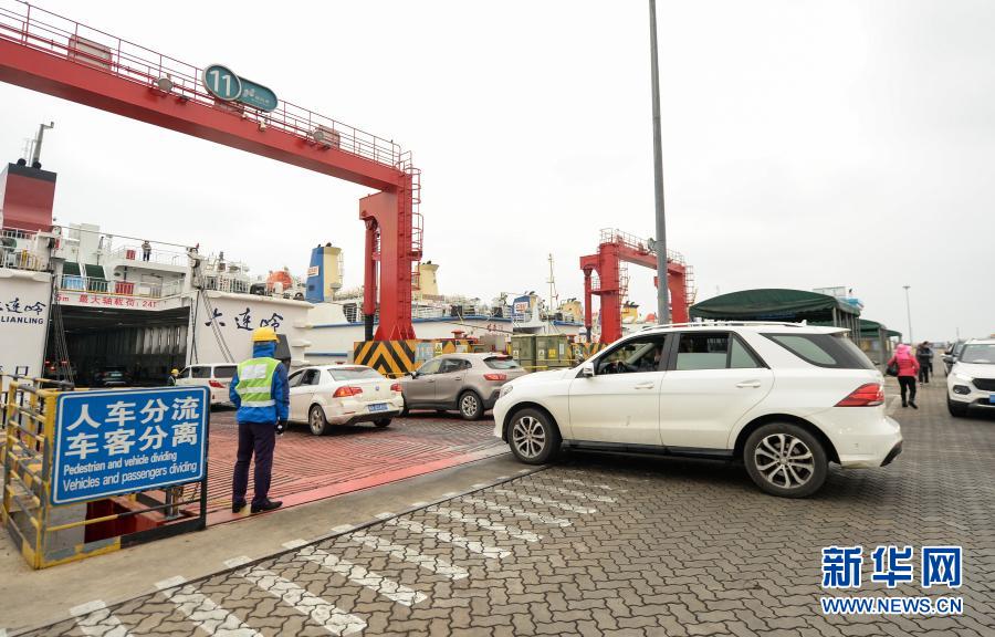 1月11日,在海南海口新海港,车辆排队等候登船。
